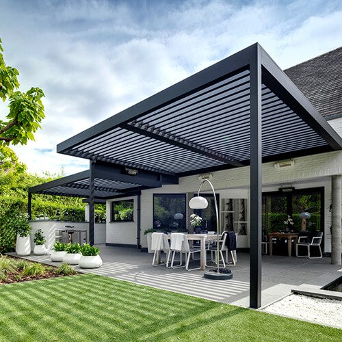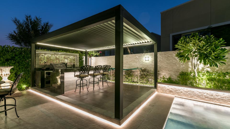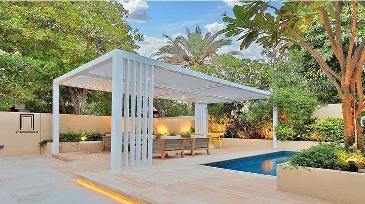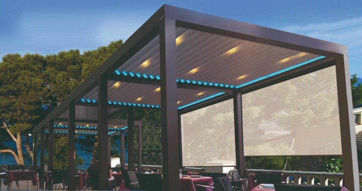 Stylish aluminum pergolas combining durability, customization, and aesthetics, creating semi-shaded outdoor spaces perfect for relaxation, dining, or entertainment in residential and commercial settings.
